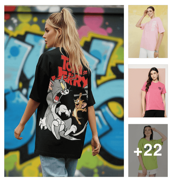 women pack of 2 printed round neck oversized t-shirt