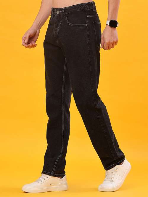 - » men plain mid rise full length straight fit jeans
