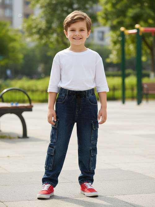 boys solid mid rise regular fit cargo