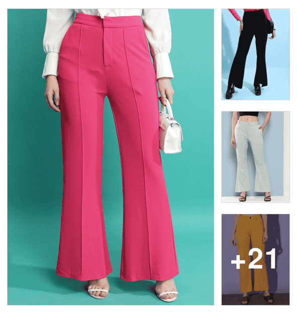 women solid high rise bootcut trouser