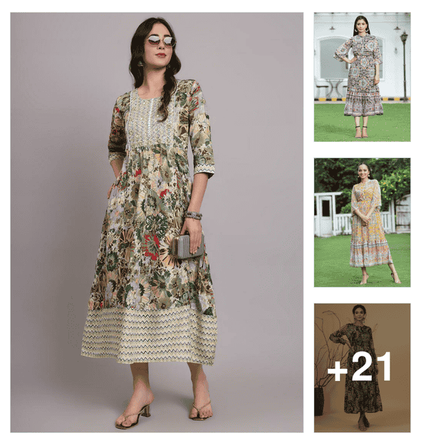 globus women blue ethnic block print mandarin collar flared hem tiered maxi fusion dress