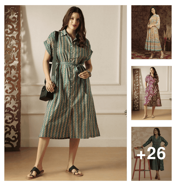 women printed three quarter sleeve ethnic dress