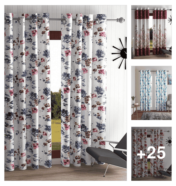 white printed curtains
