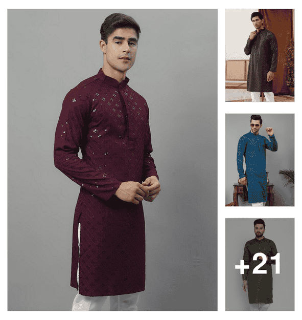 men embroidered mandarin neck long kurta