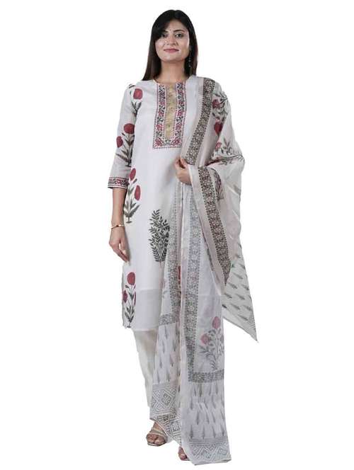 • Find gorgeous sets of ethnic wears in trending designs in off white colors suitable for casual wear of occasions.
