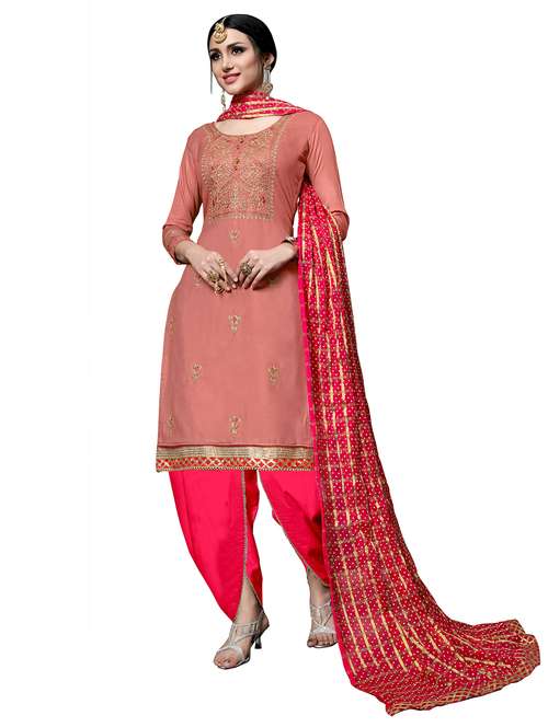 - Look ultra gorgeous in unstitched suits from Manvaa and grab these beautiful suits in peach colour.