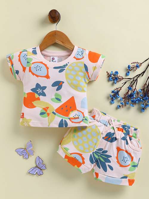 girls white cotton blend shorts & top set co-ord set