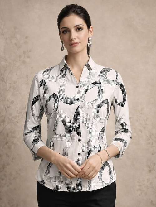 women abstarct white polyester regular shirt